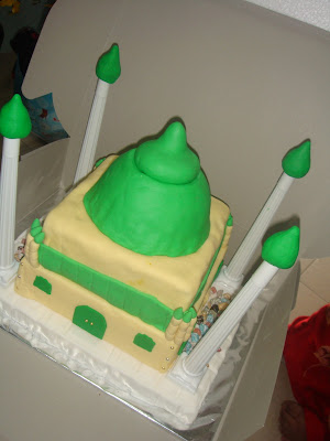 As I was assembling E cakes, bismillah was my mantra. Every time I left the cake table to take some stuffs from E opposite table, people would stop by the cakes, touch a bit, poke here and there! My heart never failed to skip a beat every-time that happens! :p