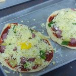 - Place 2-3 tablespoons of the tomato sauce on each of the crust.