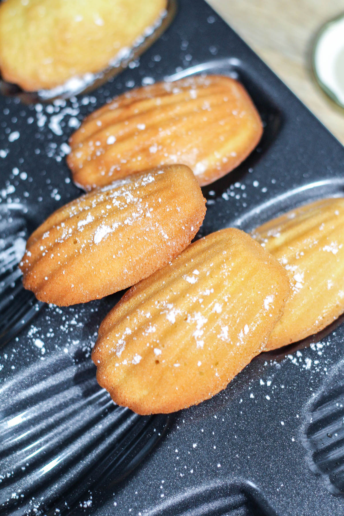 - Lightly grease a madeleine pan with baking spray or butter.