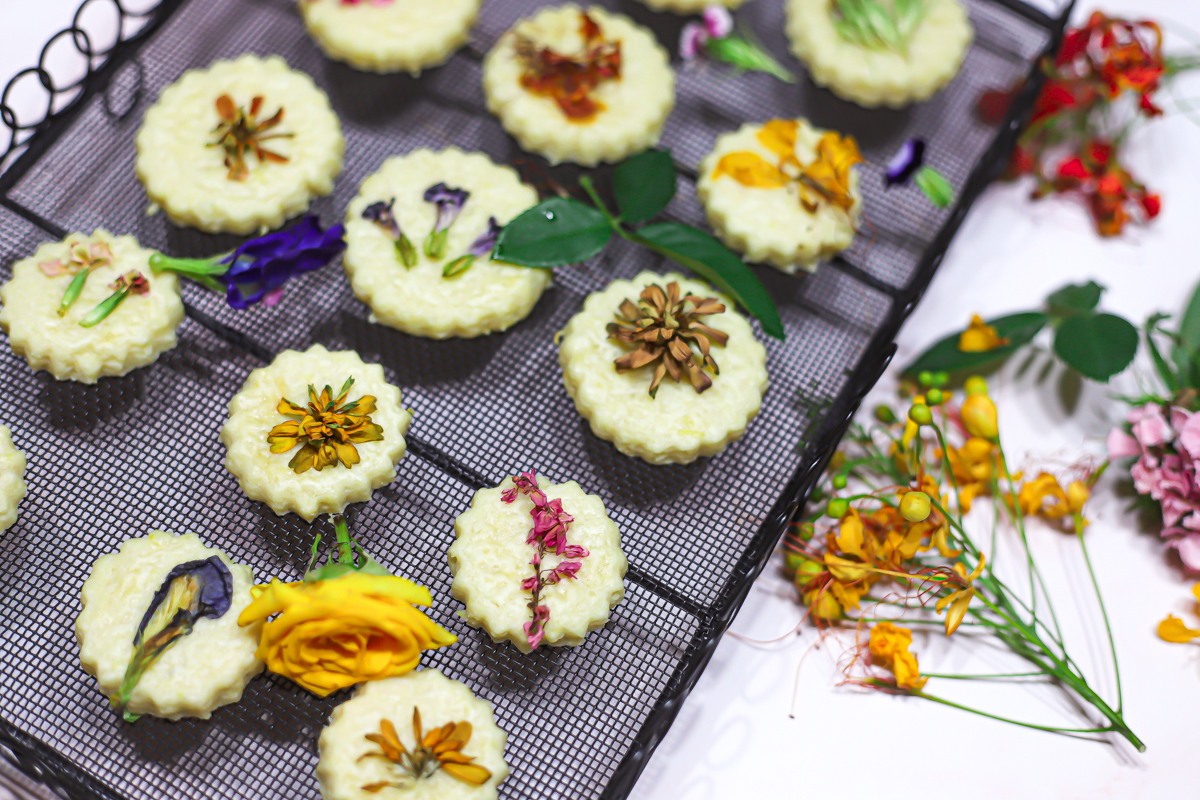 Today’s menu: Edible Flower Lemon Shortbread Cookies.