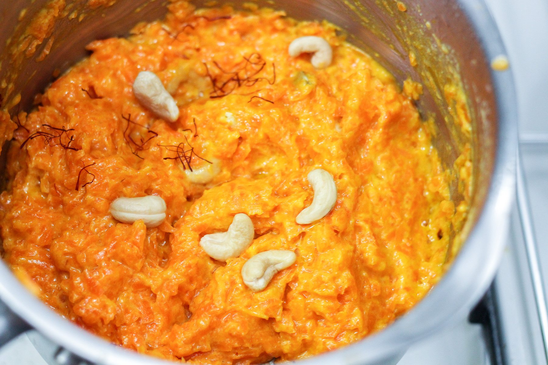 It is a really easy to make gajar halwa despite the fact that you would have to babysit it for a bit during the last 10-15 minutes of cooking. Basically you just have to cook all the ingredients in a pot till it dries up to the consistency of a thick pudding.