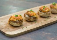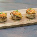 6. Using a little spoon, fill each mushroom cap with a generous amount of stuffing.