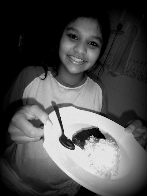 This recipe yielded only 1Litre of ice cream and since there were 9 of us, I made some brownies to go along with the ice cream, just so that everyone would be satisfied with 1 scoop of ice cream. Who said a good cooks can’t have good brains too? *Grins* My niece got 2 scoops though. After all, she was the brainchild behind this ice cream 😀